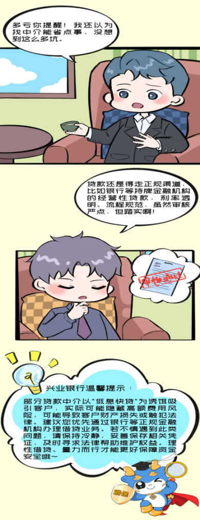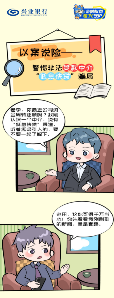总行在活动期间推出开展“以案说险”系列专题线上金融教育活动,发布原创漫画《警惕非法贷款中介“低息快贷”骗局》,通过生动案例解读骗局套路,引导金融消费者理性借贷、量力而行,谨防中介陷阱,选择正规金融机构办理贷款,更好地保障自身资金安全。