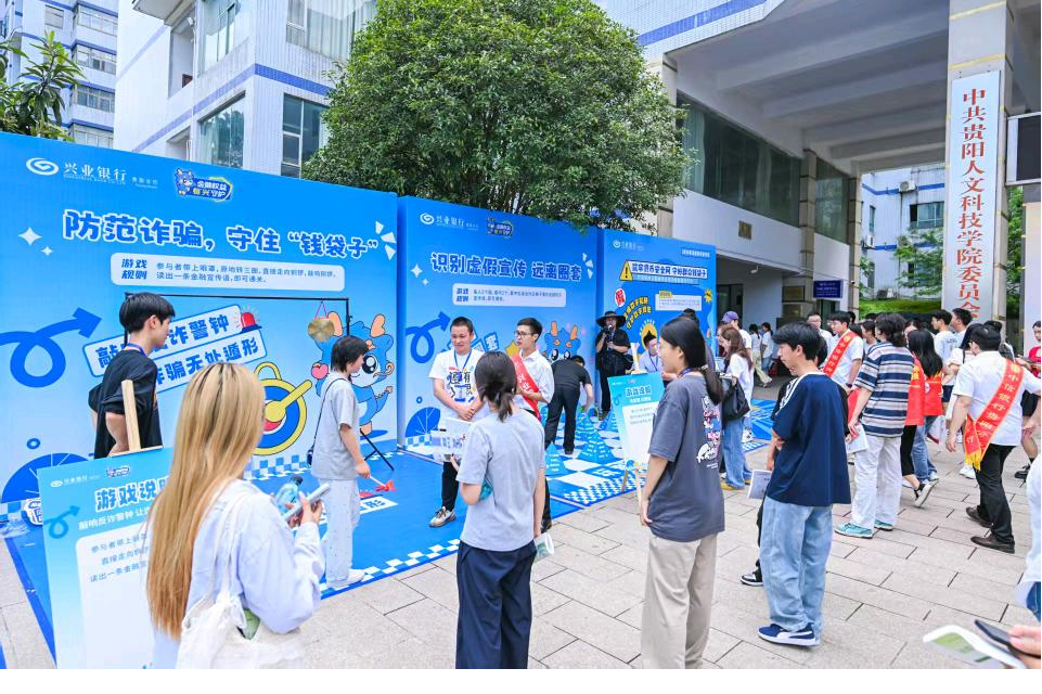 贵阳分行走进人文科技学院花溪校区,通过设置反假币识别、反诈情景模拟等宣传站点,结合“蒙眼敲锣”“火眼金睛”等趣味互动游戏,向学生普及金融知识,现场不少学生表示,这种“可以玩、可以拿、可以学”的活动形式非常吸引人。