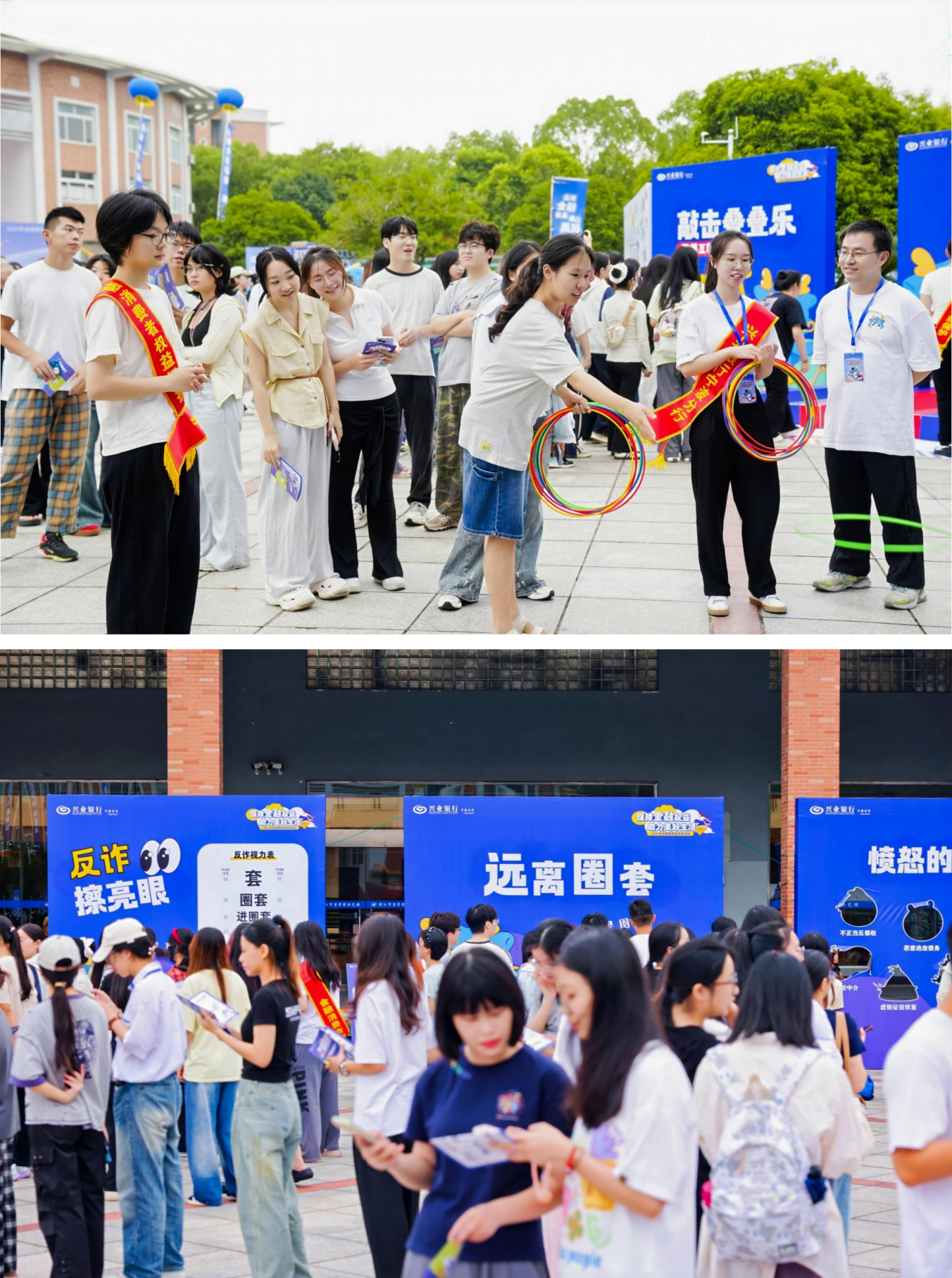 活动现场创新搭建起“金融+文化+互动 ”三维沉浸式金融知识游园会,通过“愤怒的小鸟 ”“反诈大转盘 ”“远离圈套 ”“敲击叠叠乐 ”“一击即中 ”等互动游戏和金融消保主题创意涂鸦,将专业金融知识转化为鲜活的生活语言,有效实现金融知识从“ 书本 ”到“ 生活 ”、从“被动听 ”到“主动学 ”的跨越,让师生们在轻松愉悦的氛围中学习金融知识,切实增强金融风险防范意识。“ 以前总觉得金融诈骗离自 己很远,今天才知道,原来身边有这么多陷阱, 以后一定要提高警惕。 ”一名大一新生说道。