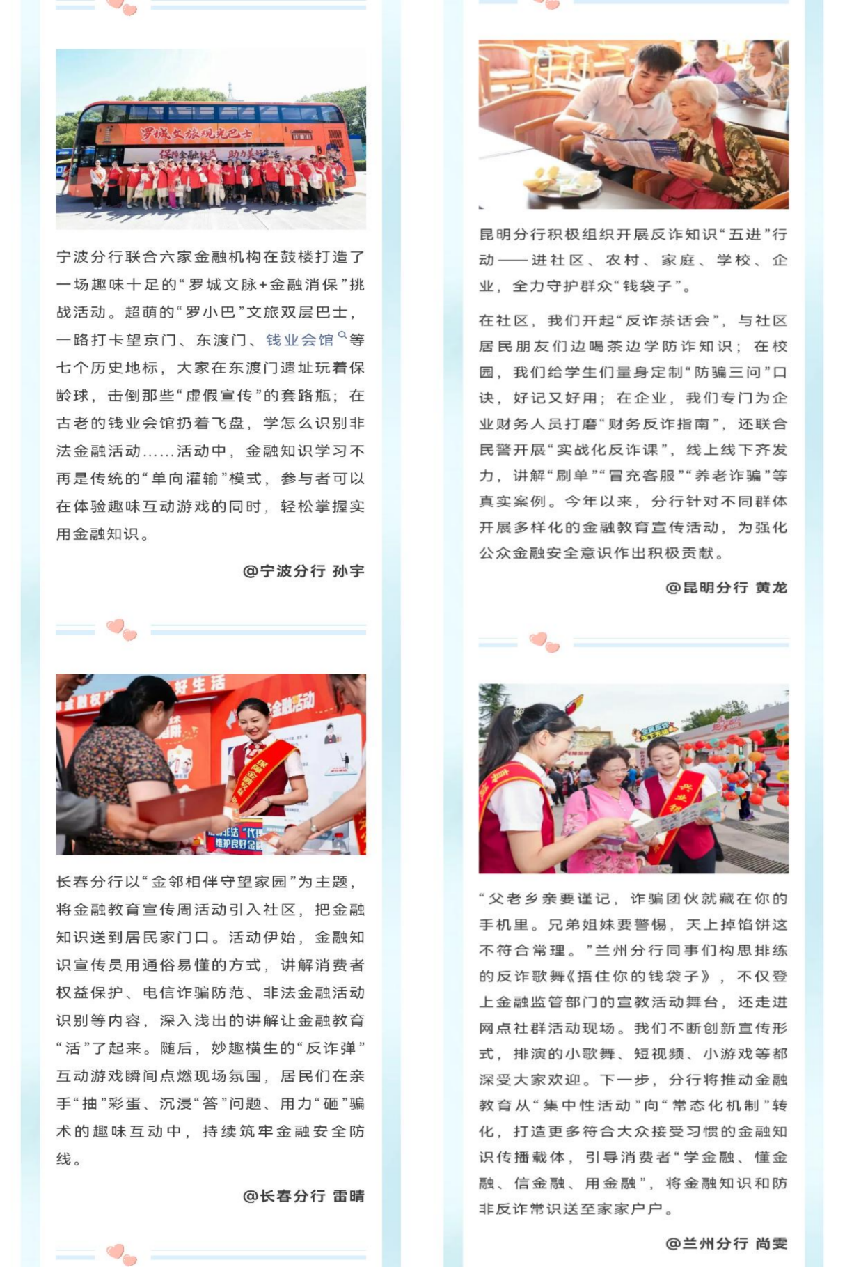 金融为民,教育为先,兴业银行以金融教育宣传周为契机,总分行联动,通过央广网、新华网等全国性主流媒体及“小红书 ”、微博热搜等自媒体,结合“五进入 ”等线下活动,持续开展有针对性、有特色的金融教育宣传活动,将各类金融风险提示传达至人民群众,不断优化金融服务水平,助力营造健康和谐的金融消费环境。